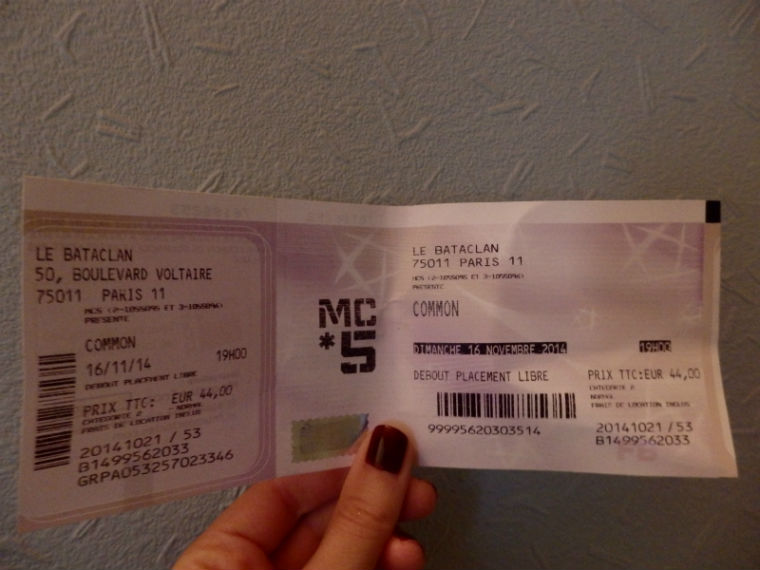 It was almost one year ago today, November 16th, 2014, that I was at a concert at the Bataclan. I remember how incredibly excited I was to see my favorite hip hop artist, Common, live for the first time ever. I remember entering the beautiful theatre and the sense of unity shared by everyone as we all smiled and sang the same lyrics together in unison. I was so close to the stage that I could almost reach out and touch him! What a thrill! We were all at that concert to enjoy his music and to dance and feel alive. I was on a cloud of happiness after that concert, filled with the feeling that the world was an amazing place. Last night the people at the rock concert probably had the same feelings of anticipation and excitement. They probably screamed and cheered when the concert began and felt the incredible rush that music can sometimes bring. Like myself, they were there to have fun and forget their troubles…but unfortunately their evening transformed into horror.