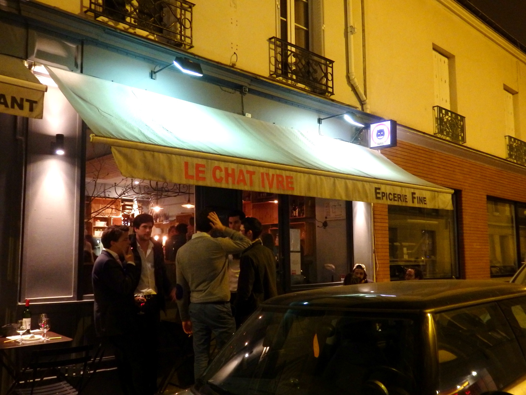 It’s hard to think about France without thinking of wine, so it’s not surprising that there are tons of wine bars (or cave à vins) in the city. One of those wine bars, Le Chat Ivre (which translates as the drunken cat) is located in a quiet street not too far from Place de la Bastille in Paris. When my friend V suggested this place I was like “hell yeah”, as I cannot resist a bar with a funny name! So Friday night I reserved a table for myself and three of my favorite ex-colleagues to meet up for a long overdue get-together.