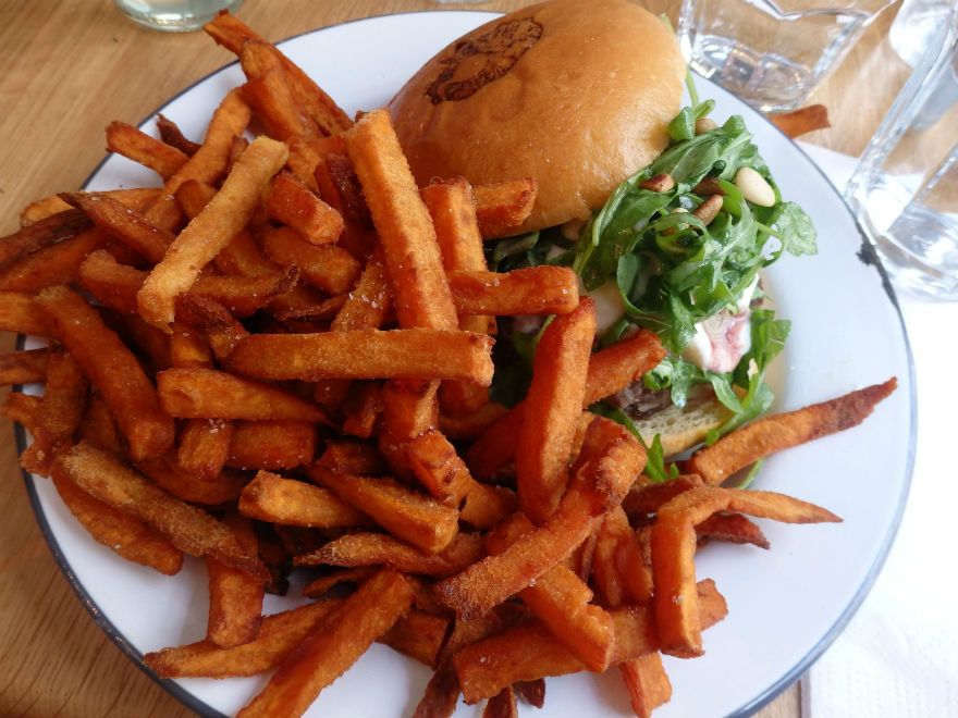 I went here with my friend K on a week night as we were looking for a place where we could get a drink and some share plates…neither of us was very hungry (I had eaten a huge chicken kebab for lunch)! We sat down in the cozy room, were greeted by the friendly owner and took a look at the menu. Drinks include a good variety of wines as well as non-alcoholic beverages and a random Japanese beer. As for the food, everything on the menu is incredibly tempting and prices range from 5.50-12 Euros. They are small portions, but they are meant to share, so depending on your appetite (and budget) you can choose as many or as few as you like to go along with a glass of wine, such as a Chardonnay « Patchwork » 2013, Tissot (my choice at 6,5 Euros).